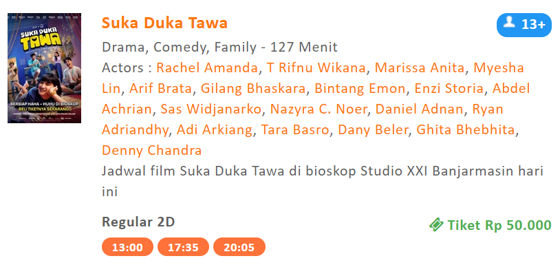 Suka Duka Tawa sudah tayang sejak Kamis (8/1/2026) di Bioskop Studio XXi Duta Mall Banjarmasin. Jangan sampai ketinggalan, jangan sampai turun layar. Laksi nonton film bagus ini.(ichal iloenx)