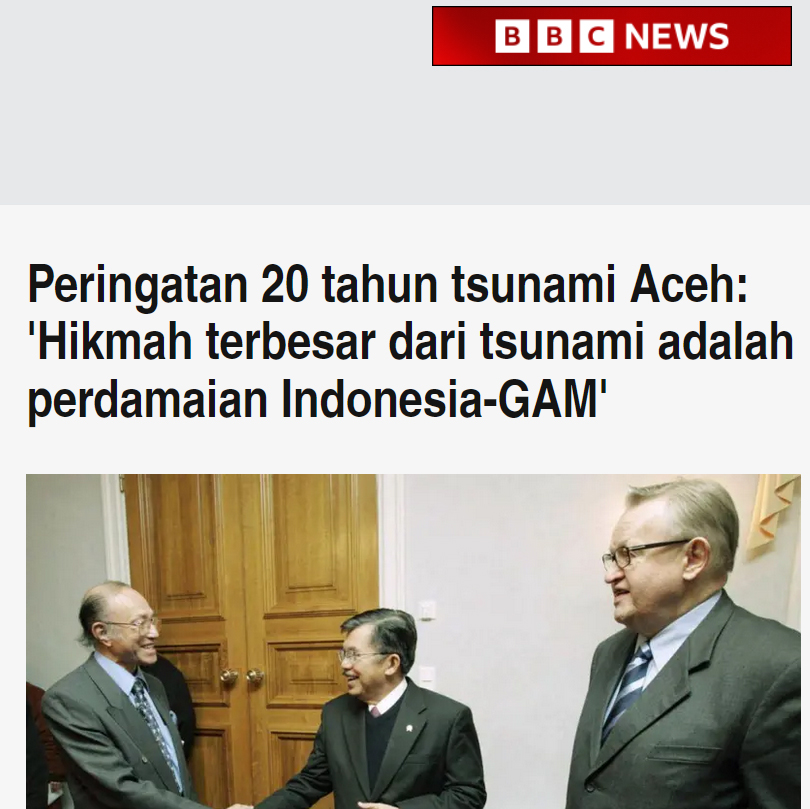 Persatuan Indonesia? Justru di saat paling kelam inilah persatuan bangsa ini terbukti sangat kuat. Konflik bersenjata yang sudah berlangsung puluhan tahun di Aceh pun berhenti. Pemerintah dan Gerakan Aceh Merdeka duduk bersama, mengutamakan keselamatan rakyat di atas segalanya. Perdamaian yang selama ini terasa mustahil, tiba-tiba terwujud karena tragedi bersama.