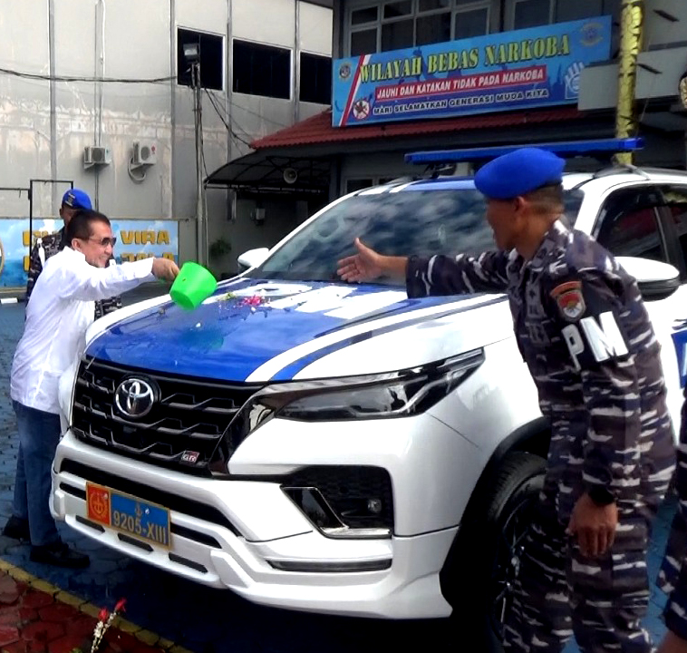 Banjarmasin, iloenxnews.com || Presiden Direktur PT. Global Arta Borneo (GAB) Kalimantan Selatan (Kalsel), H. Muhammad Zain (HMZ) memberikan hibah berupa 1 unit mobil Toyota Fortuner GR Sport untuk Patroli dan Pengawalan (Patwal) Polisi Militer Angkatan Laut (POMAL) serta 1 unit lagi mobil Toyota Alphard untuk operasional Pangkalan TNI Angkatan Laut (Lanal) Banjarmasin.