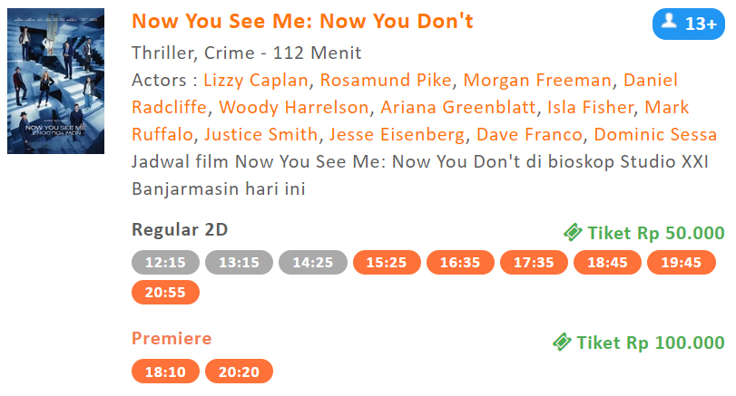 Apakah mereka berhasil mendapatkan berlian berharga tersebut? Saksikan kelanjutannya di film Now You See Me: Now You Don’t hari ini juga, Senin (24/11/2025) di bioskop XXI Duta Mall Banjarmasin yang sudah tayang sejak 10 hari lalu.