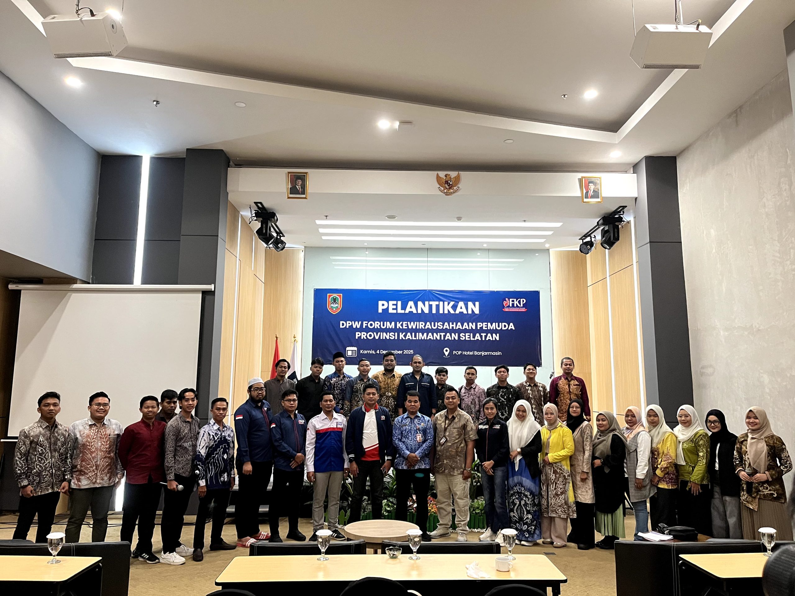 Banjarmasin, iloenxnews.com || DPW Forum Kewirausahaan Pemuda (FKP) Provinsi Kalimantan Selatan resmi melantik jajaran pengurusnya dalam sebuah acara yang digelar di Ballroom POP Hotel, Jakan H.J. Djok Mentaya Banjarmasin, Kamis (4/12/2025).