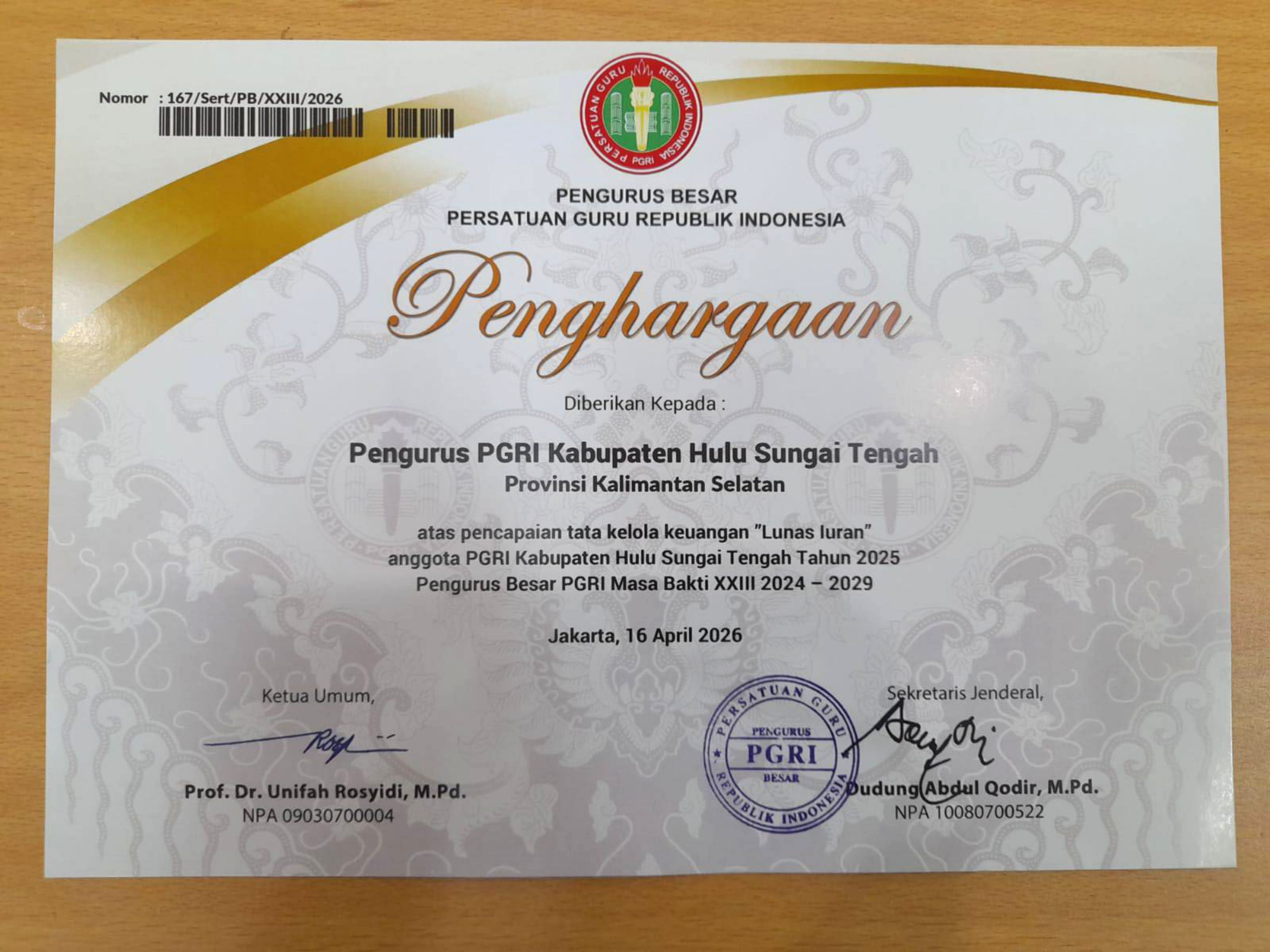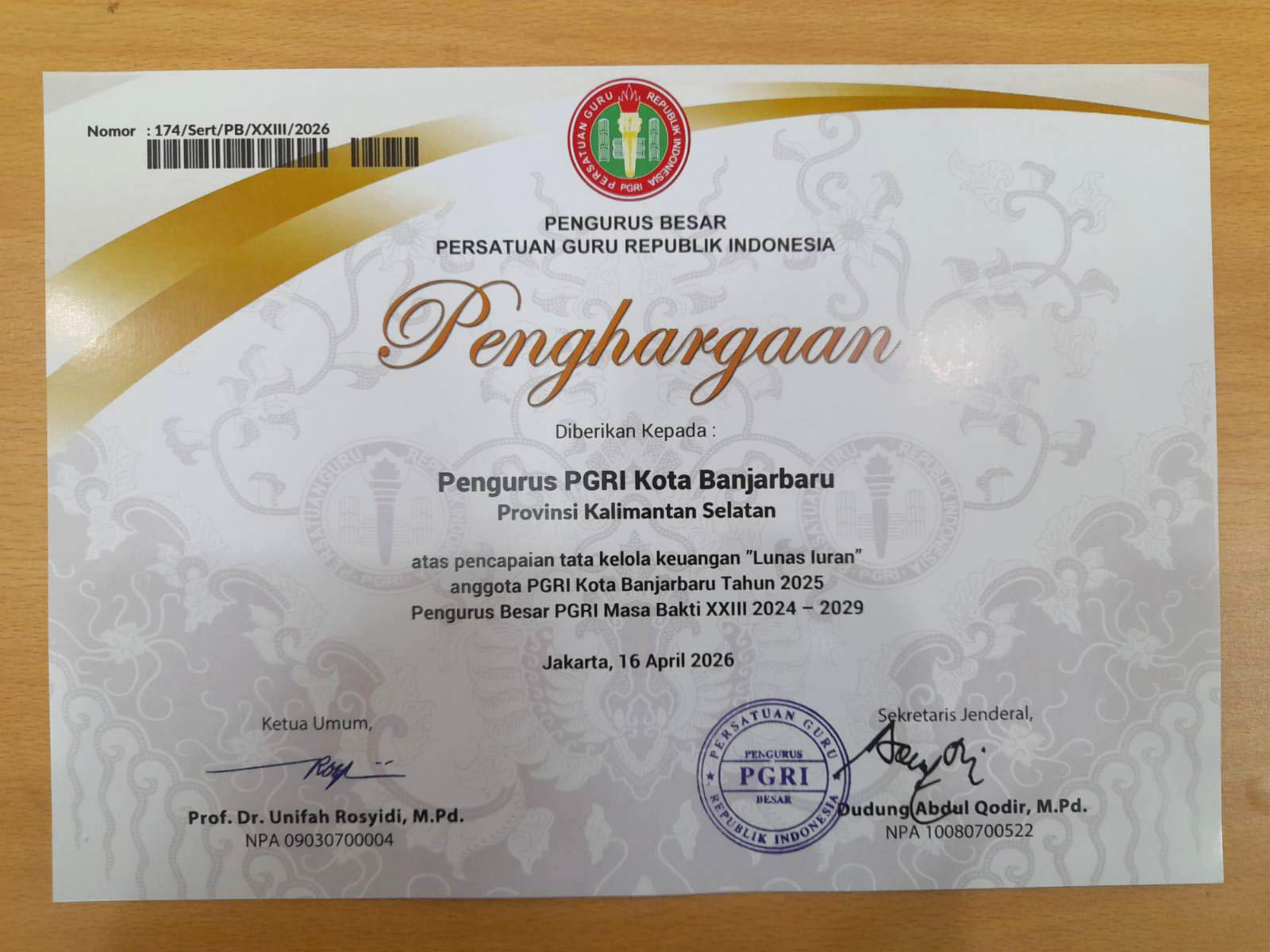 Penghargaan tersebut tidak hanya diraih oleh PGRI tingkat provinsi, namun juga seluruh PGRI kabupaten/kota se-Kalimantan Selatan turut memperoleh penghargaan serupa. Hal ini menunjukkan konsistensi dan sinergi pengelolaan organisasi yang baik dari tingkat bawah hingga atas.