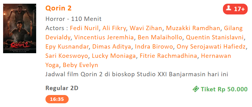 Itulah penjelasan mengenai sinopsis film Qorin 2. Jangan lupa tonton di hari ini juga Kamis (18/12/2025) bioskop XXI Duta Mall Banjarmasin, ya!