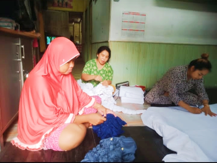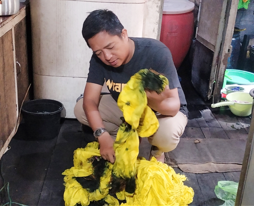 mengambil upah dari proses mempola motif, menjahit, meikat warna, mencelup hingga melepasi benang.