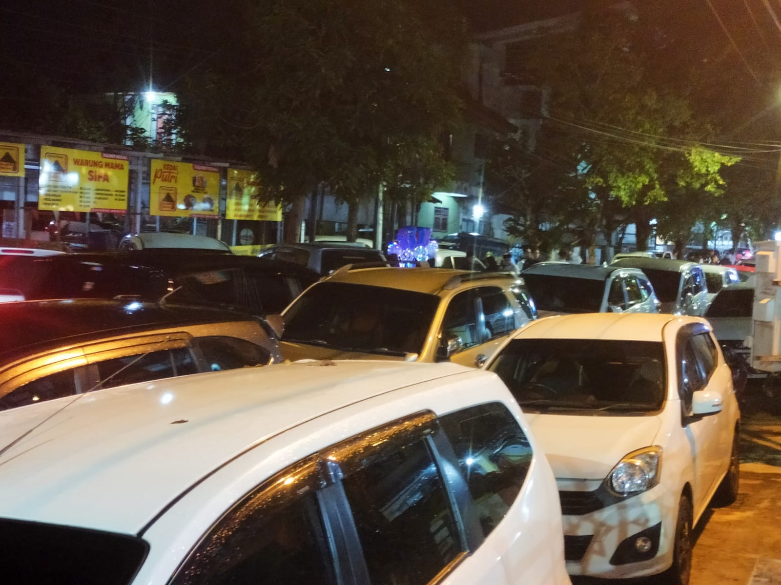 Parkir mobil meluber sampai ke bahu jalan. (foto: ichal iloenx)