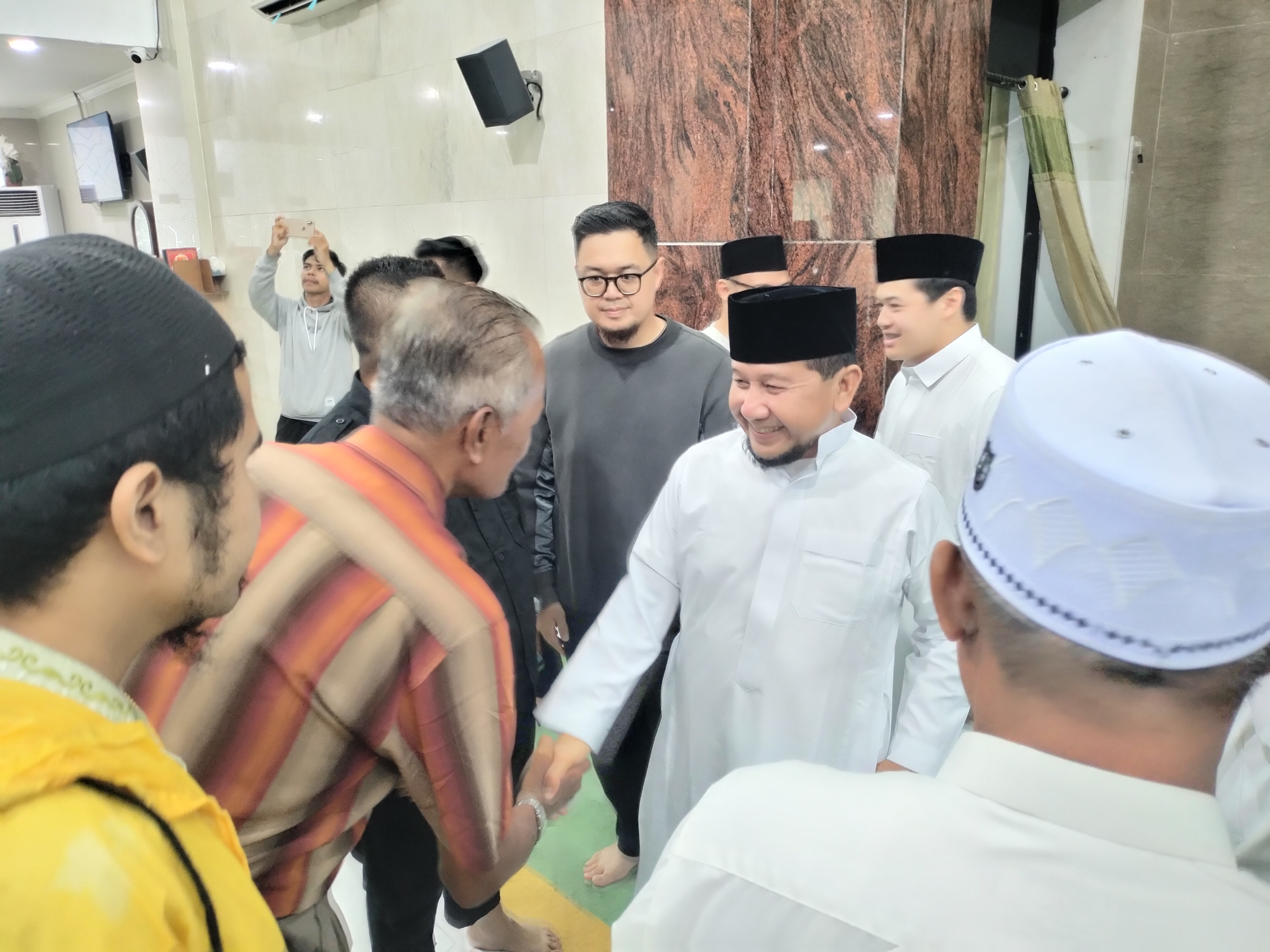 H. Muhammad Zain saat menghadiri acara dan disalami para jamaah. (foto: ichal iloenx)