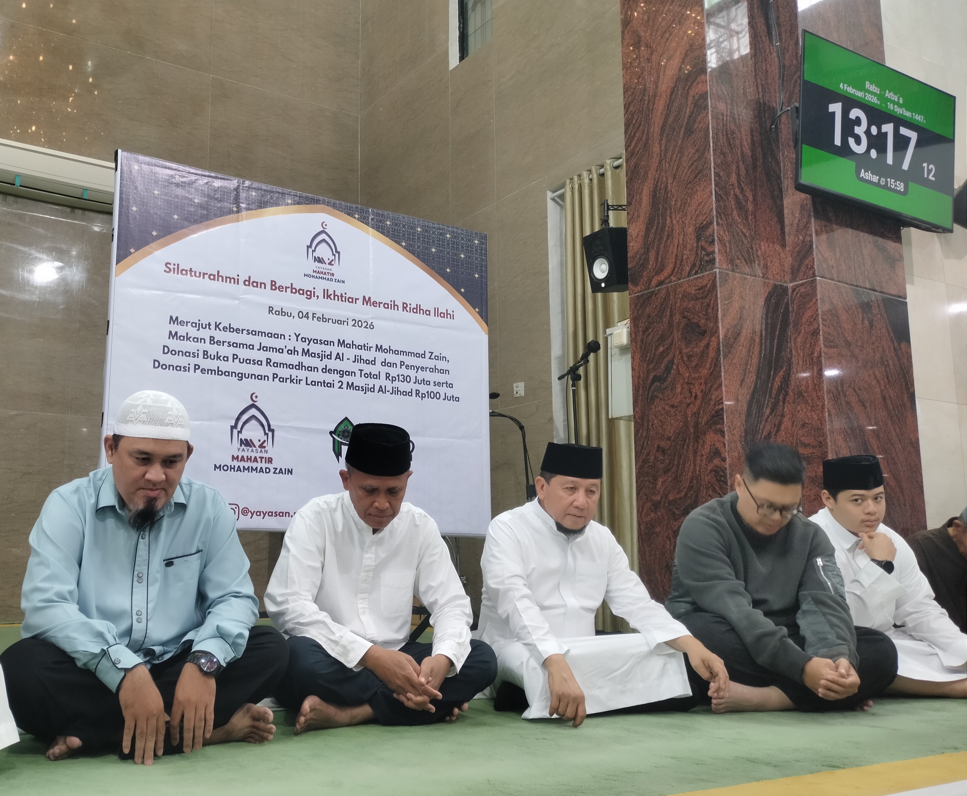 Acara kali ini bertema Silaturahmi dan Berbagi, Ikhtiar Meraih Ridha Ilahi, berlangsung dalam sebuah kegiatan sosial yang khidmat dan penuh kebersamaan, selepas Sholat Zuhur dan Sholat Jenazah berjamaah di Ruang Induk Masjid bersama ribuan jamaah, Rabu (4/2/2026).